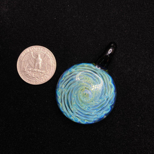 Blown Glass Pendant with Green and Blue Spiral and Galaxy
