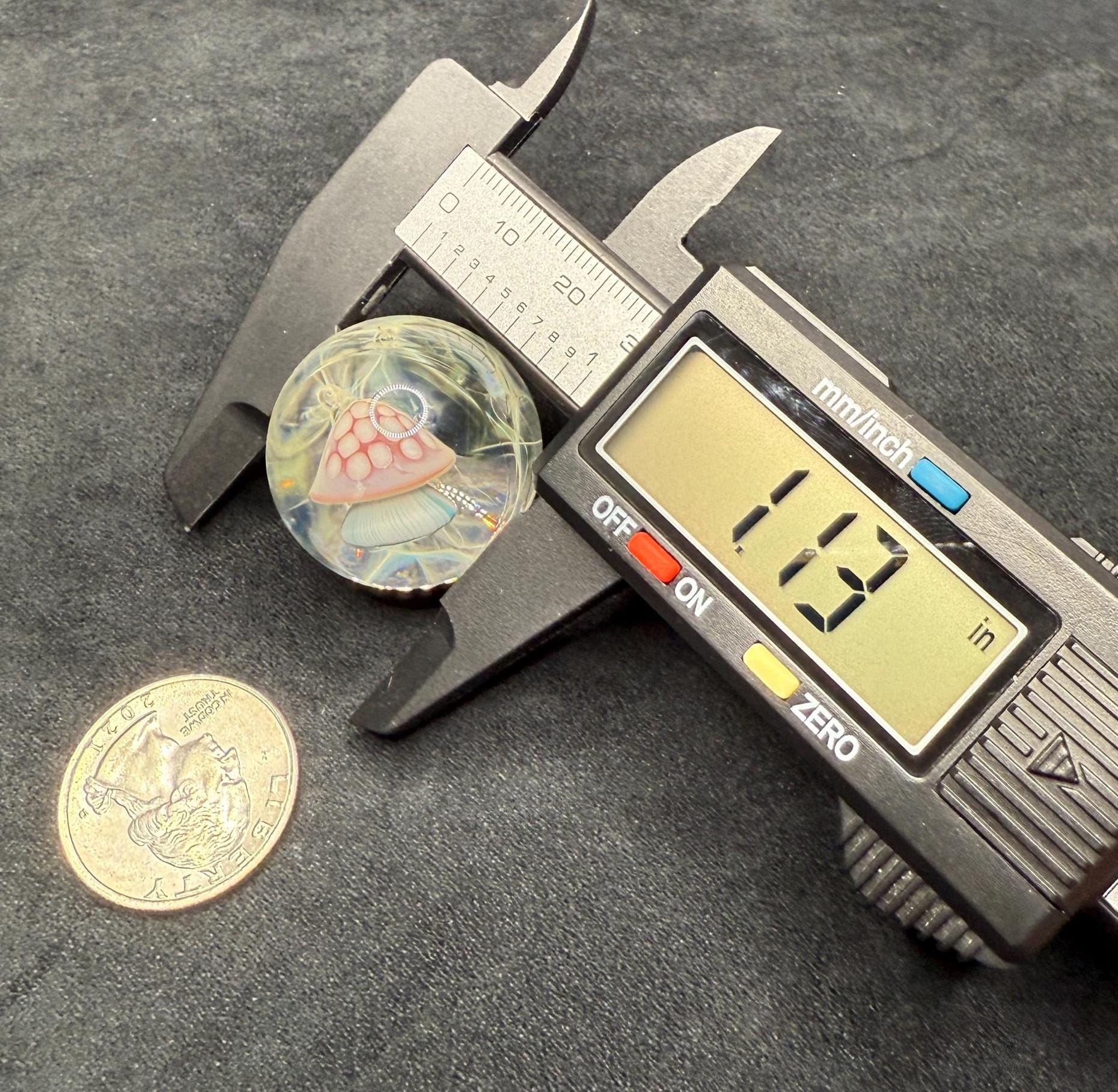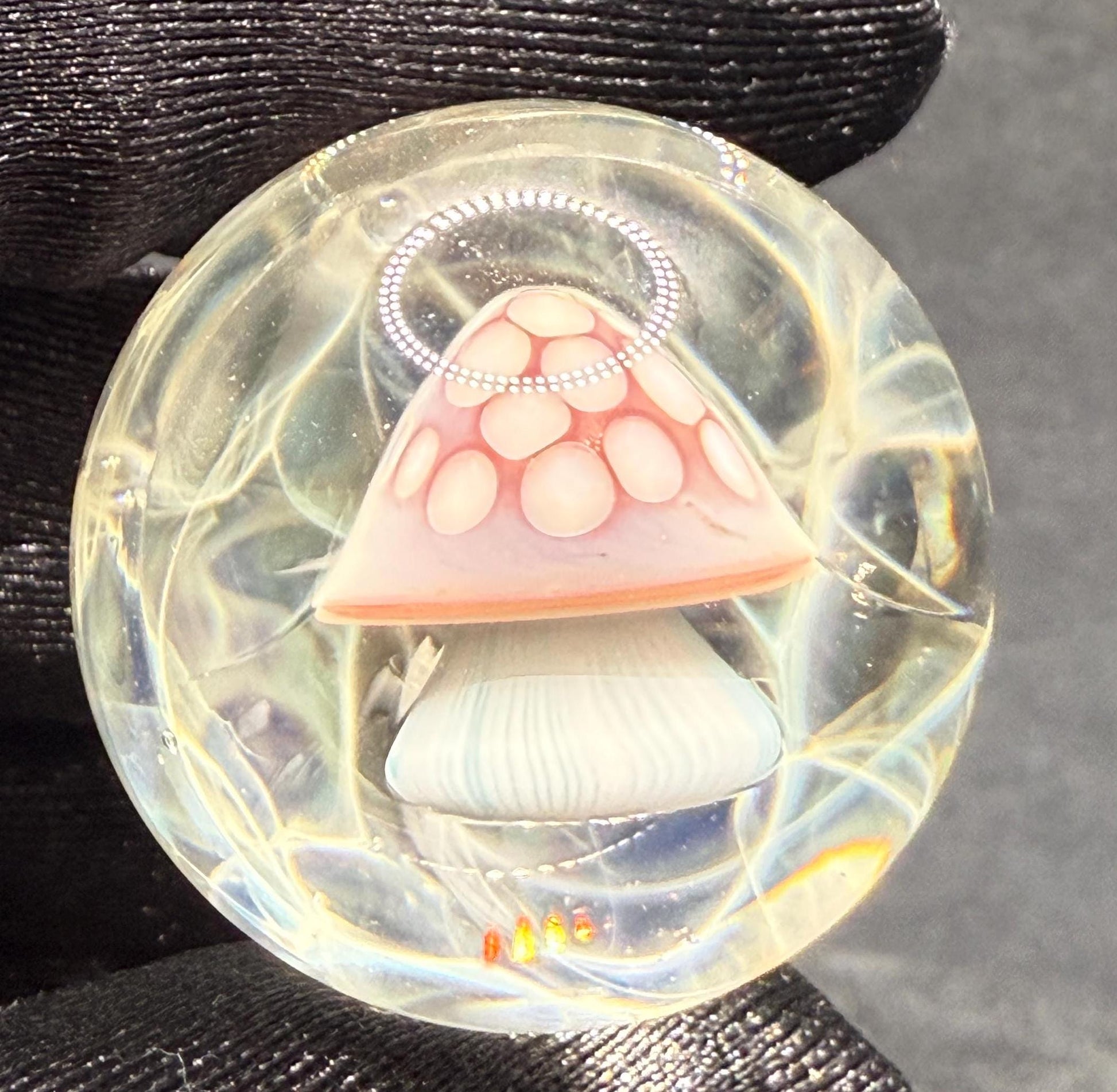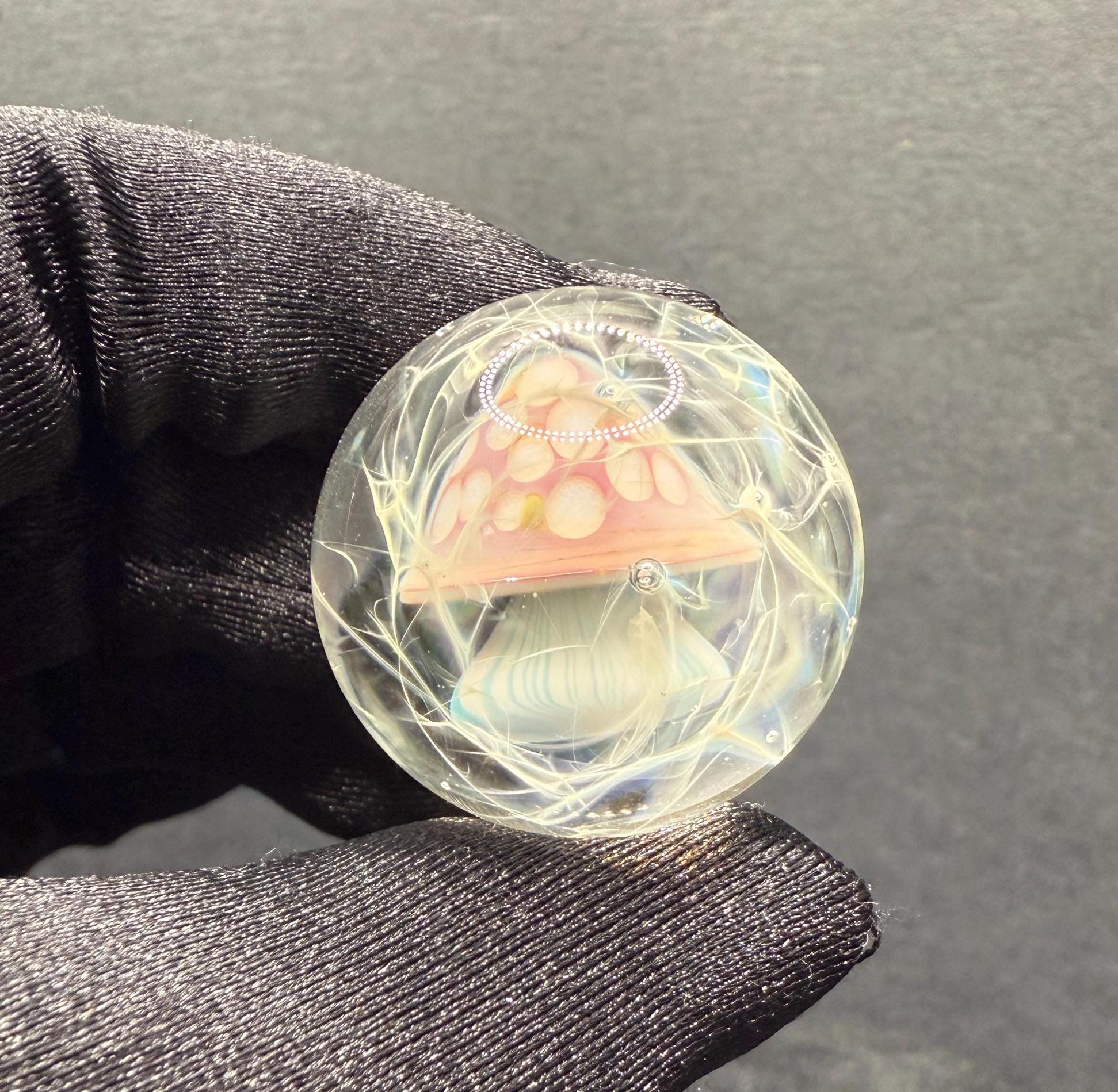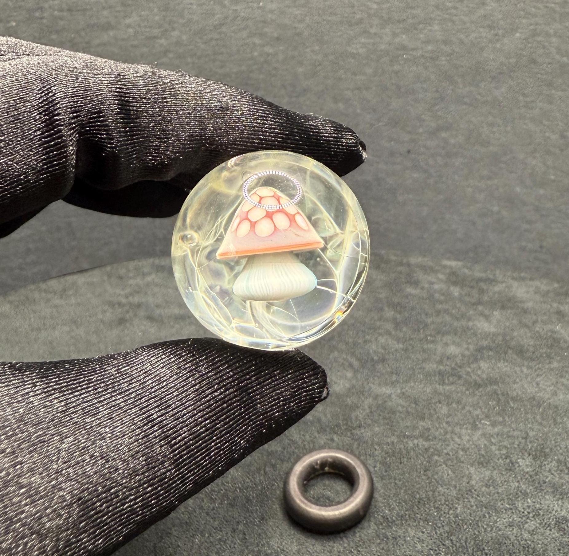 Handmade Glass Marble with Red Mushroom and Silver Chaos Fume 1.08 Inch || Heady Glass Marble for Collectors and Mushroom Lovers