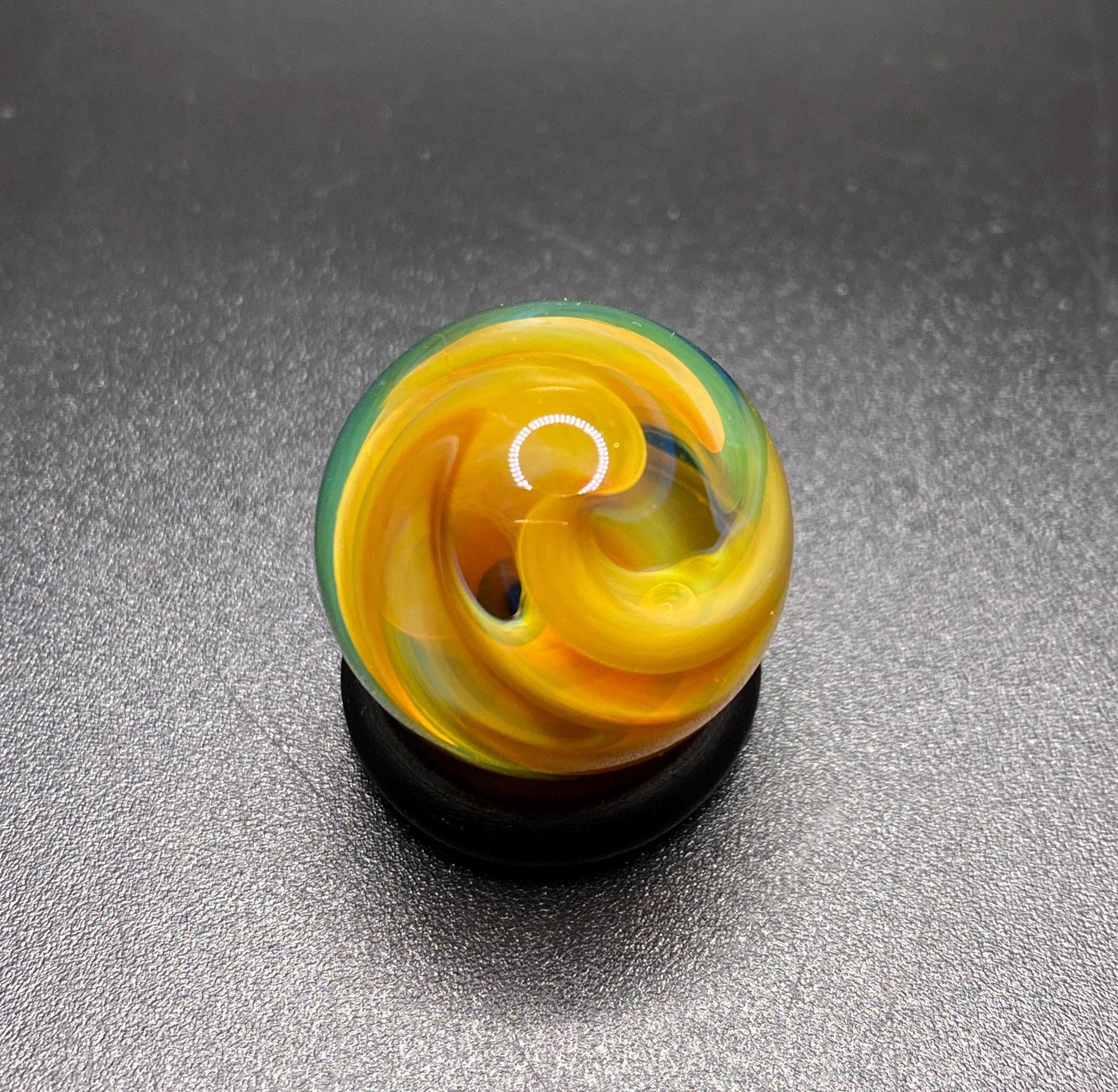 Handmade Glass Marble with Silver Fume Spiral .81 Inch - Heady Glass Art Marble - Includes Wooden Display Stand